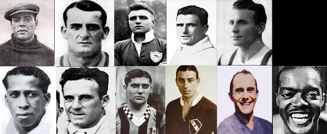 Second row from left: Andrade; Scarone; Meazza, Orsi Biavati; Leonidas.